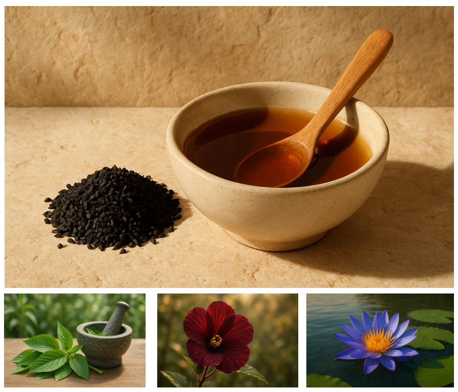 Egyptian black cumin seeds — known in Arabic as the ‘seeds of blessing’ — were found in ancient Egyptian tombs and have long been associated with beauty and body care traditions. Black seed oil contains thymoquinone, a naturally occurring compound known for its antioxidant properties and used in Nylure to support scalp comfort and hair conditioning.