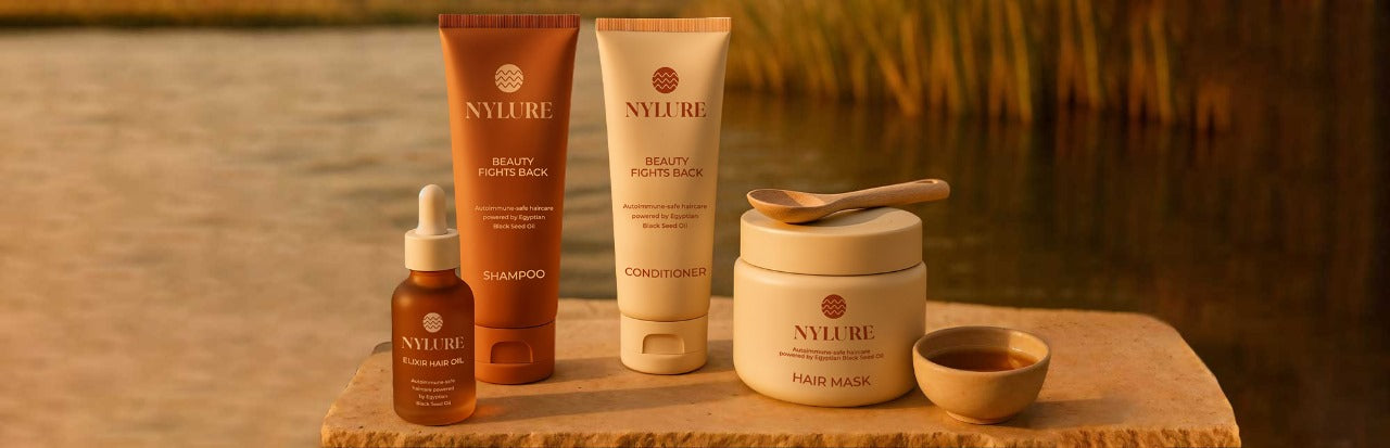 For too long, you’ve searched for haircare that wouldn’t punish your scalp.With autoimmune disease and sensitive skin, even “gentle” products left you with irritation, shedding, or worse. The choice was always the same: protect your health or enjoy truly luxurious hair. Nylure ends that choice. This is haircare born from science and rooted in heritage: dermatologist-tested,hypoallergenic, toxin-free, and crafted to be safe for autoimmune-prone scalps.